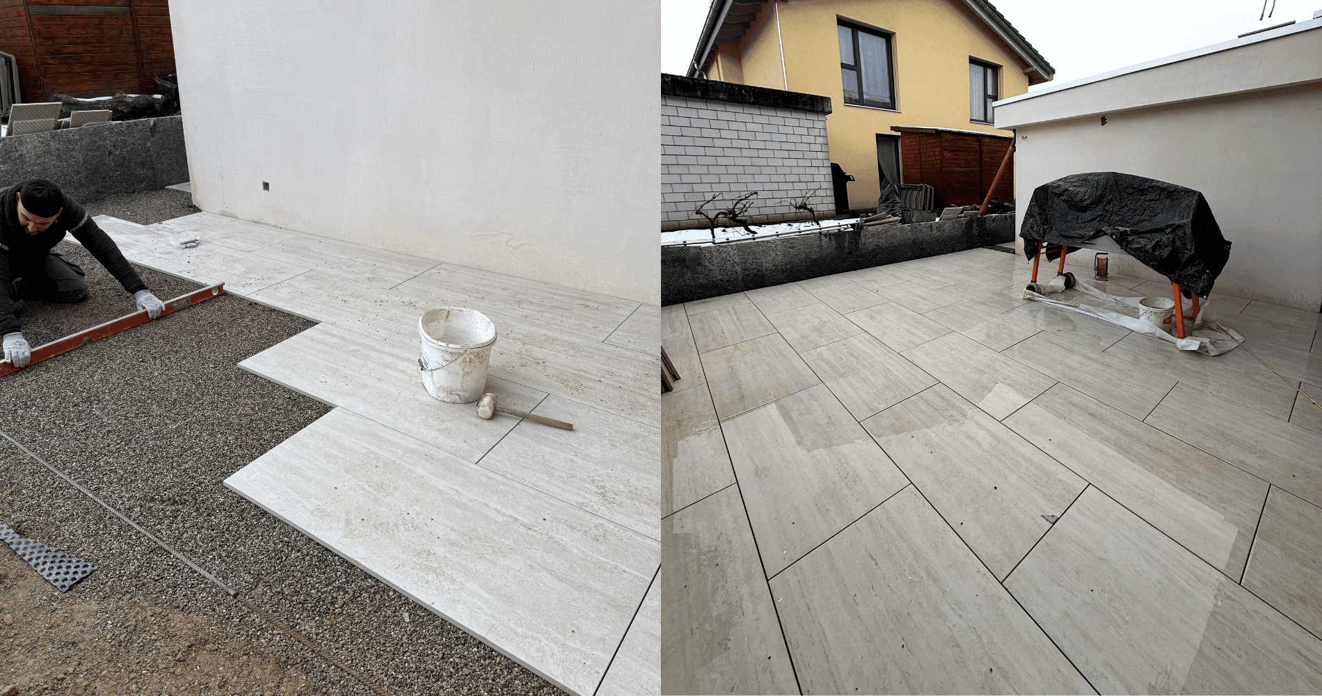 Wir verlegen Platten oder Naturstein präzise und sorgen für saubere Kanten, Übergänge und Abschlüsse.